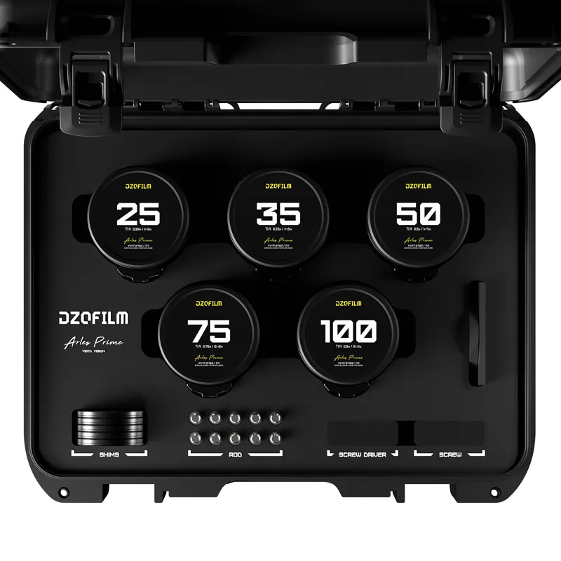 סט העדשות DZOFilm Arles FF/VV Prime Cine כולל 5 עדשות פריים קולנועיות מקצועיות, המיועדות להפקות קולנוע, סדרות טלוויזיה, פרסומות וקליפים ברמה הגבוהה ביותר. הסט כולל את אורכי המוקד: 25mm, 35mm, 50mm, 75mm ו־100mm, ומספק כיסוי מלא לצרכים קולנועיים – החל מצילומי רחוב דרמטיים ועד לפורטרטים וטלפוטו עם עומק מרשים.