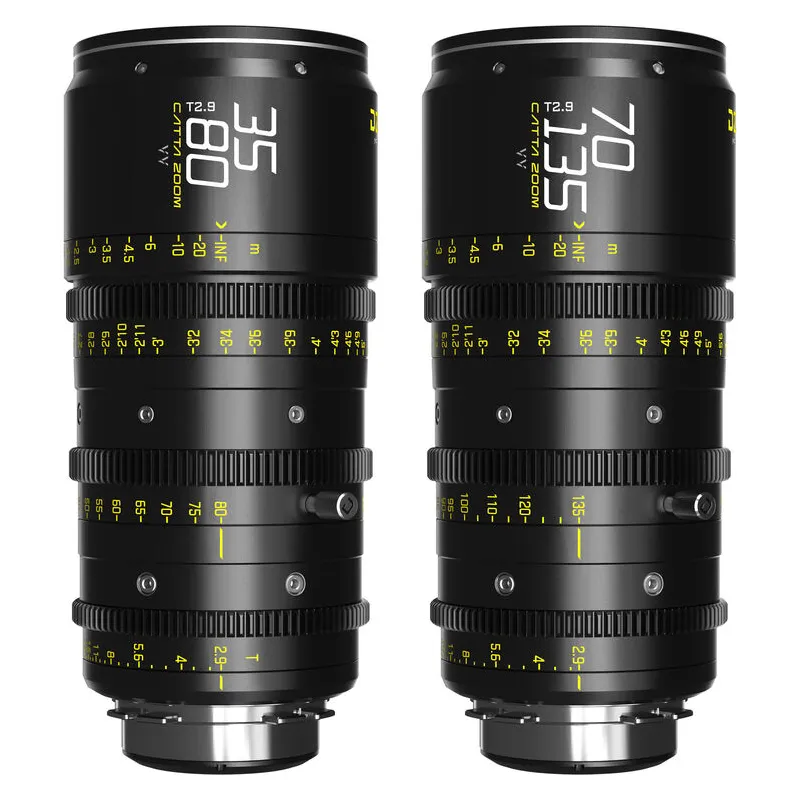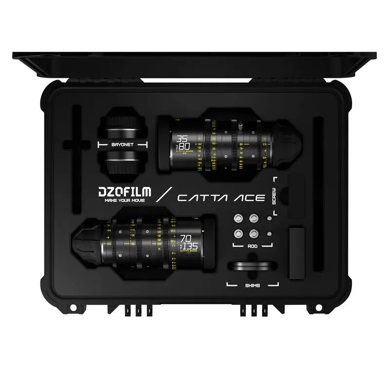 סט DZOFilm Catta Ace FF 35–80 & 70-135mm T2.9 מספק פתרון זום קולנועי מתקדם, גמיש ואמין לכל סט צילום מקצועי.